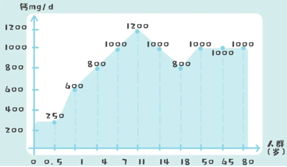 首先,劑量不要超過推薦量。下圖是各年齡階段孩子的推薦鈣攝入量。鈣補(bǔ)多了不但容易便秘、腸胃不適,還會(huì)對(duì)身體器官造成額外的負(fù)擔(dān)。小劑量、多頻次的吸收效果更好。 劑量小,更靈活,可以隨時(shí)調(diào)整。哪天飲食鈣量攝入少了,多吃一次鈣劑;反之,就少吃一次。