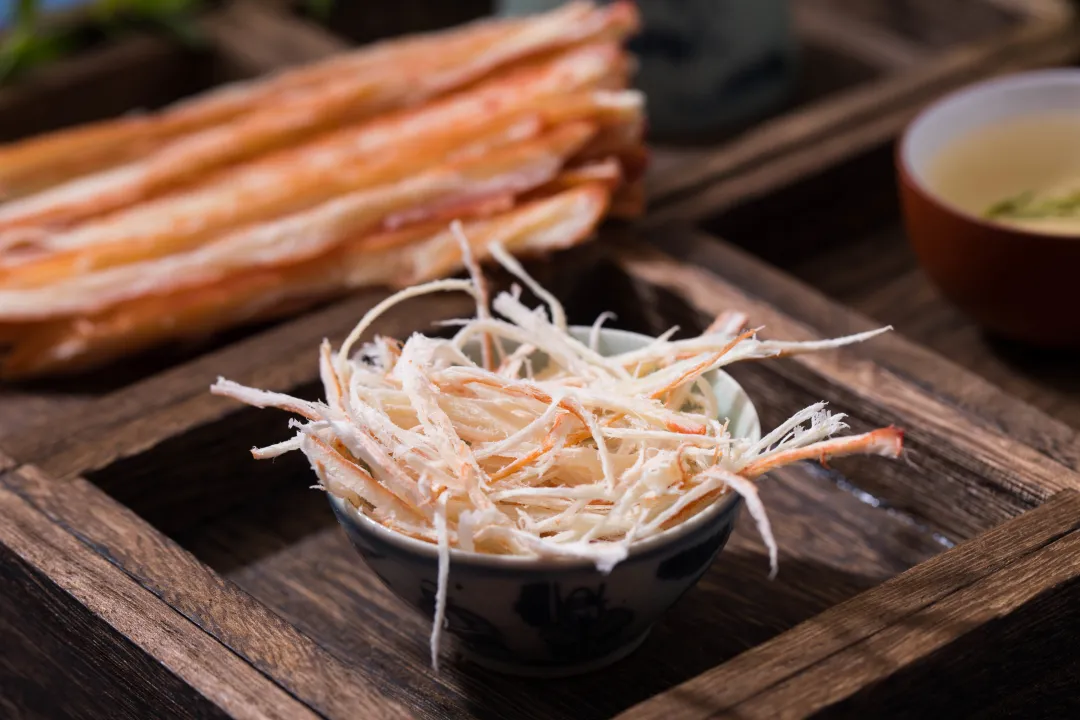 含鹽冠軍是海產(chǎn)干貨,其中鱈魚絲、魷魚絲和海苔是含鹽量較高的。