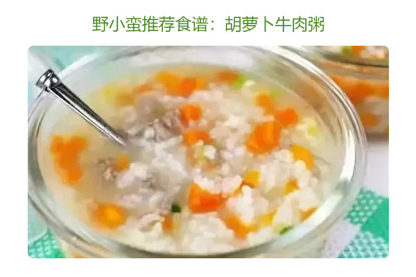 煲粥步驟:胡蘿卜洗凈去皮,切成碎末;牛肉洗凈后用清水泡20分鐘,再剁成肉末;大米洗凈放入砂鍋,加清水大火煮開,轉(zhuǎn)小火熬制;待粥煮至濃稠時(shí),放入胡蘿卜、牛肉,大火煮開,小火熬15分鐘即可;出鍋前加少許食鹽調(diào)味。