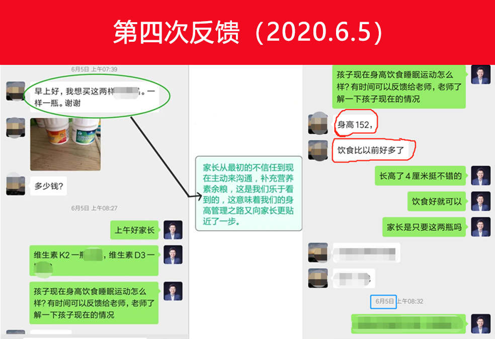 野小蠻營養(yǎng)師果斷的修改制定的基礎營養(yǎng)方案,并定制了營養(yǎng)素的促進方案,這次家長也非常配合的執(zhí)行,接下來就是這位家長反饋的孩子身高情況: