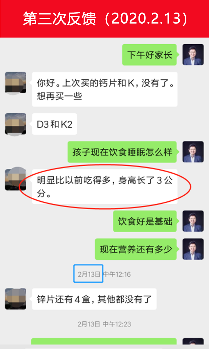 從家長的反饋情況來看,孩子的飲食狀況變好,飯量增多,身高也增高了3cm,也就是目前身高在148cm(11.5歲女孩標準身高在149cm),身高差距已經縮短為1cm,效果還是非常顯著的。